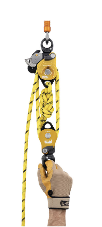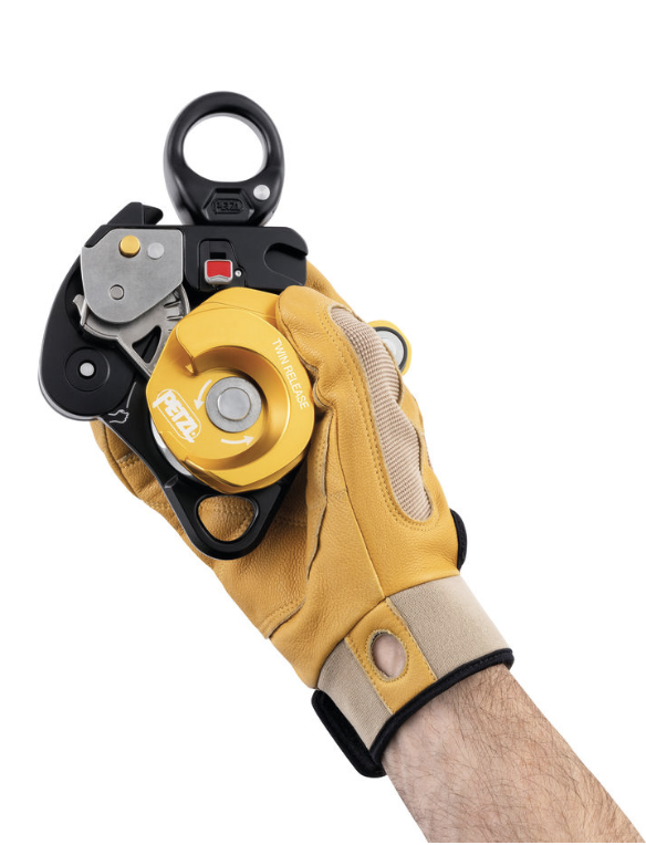 The TWIN RELEASE progress capture pulley is designed to set up 4:1 haul systems for work in confined spaces or for technical rescue.  Releasing the cam is possible with the ergonomic handle.  The brake integrated into the moving side plate and the main faceted sheave with single-direction rotation, offer additional braking and better control when lowering heavy loads.  The two sheaves provide excellent hauling efficiency.  The swivel facilitates operations, allowing the pulley to be oriented under load and direct connection of carabiners, ropes, or slings.
