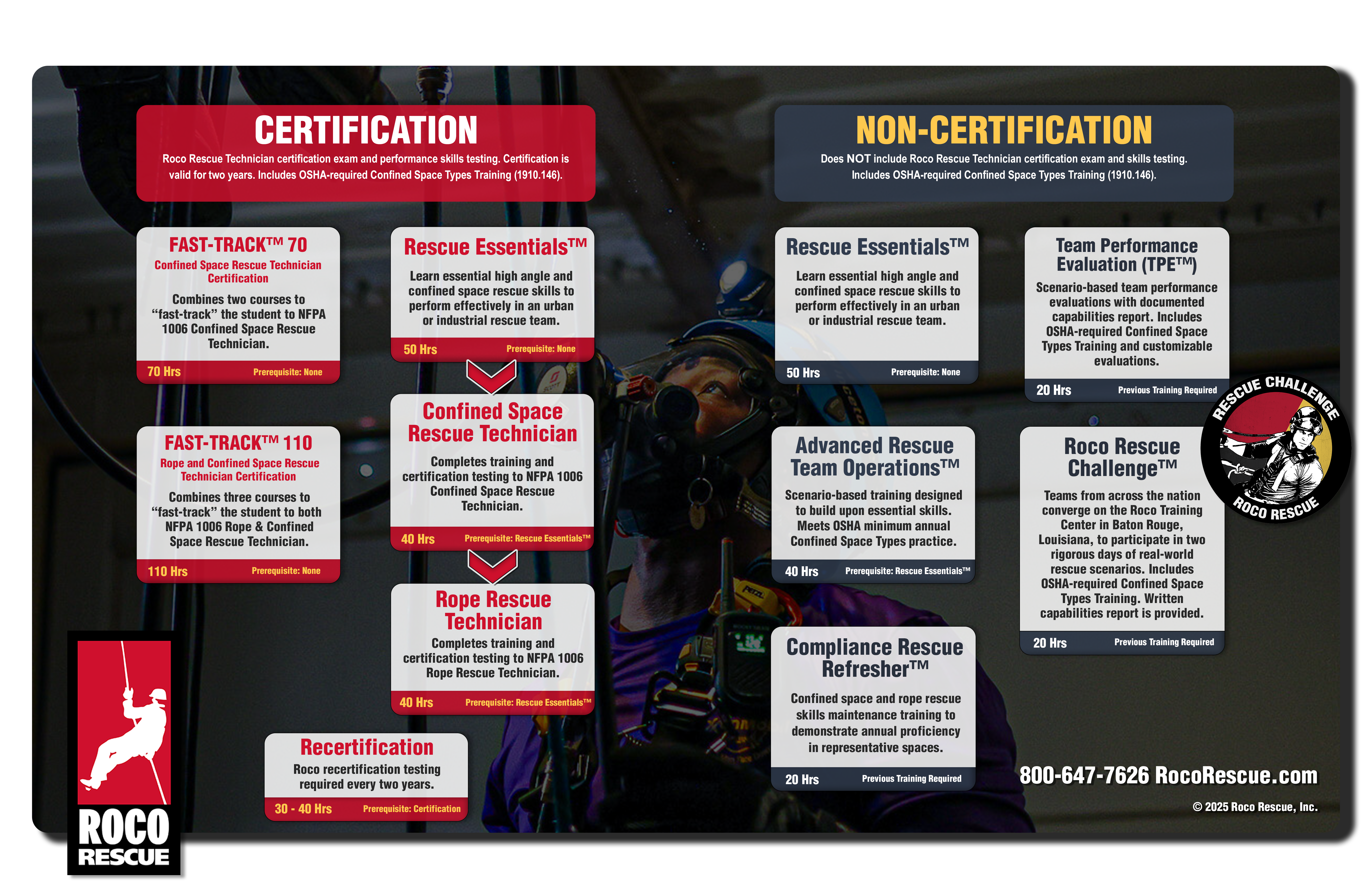 Roco offers two certification programs based on the rescue disciplines of NFPA 1006: